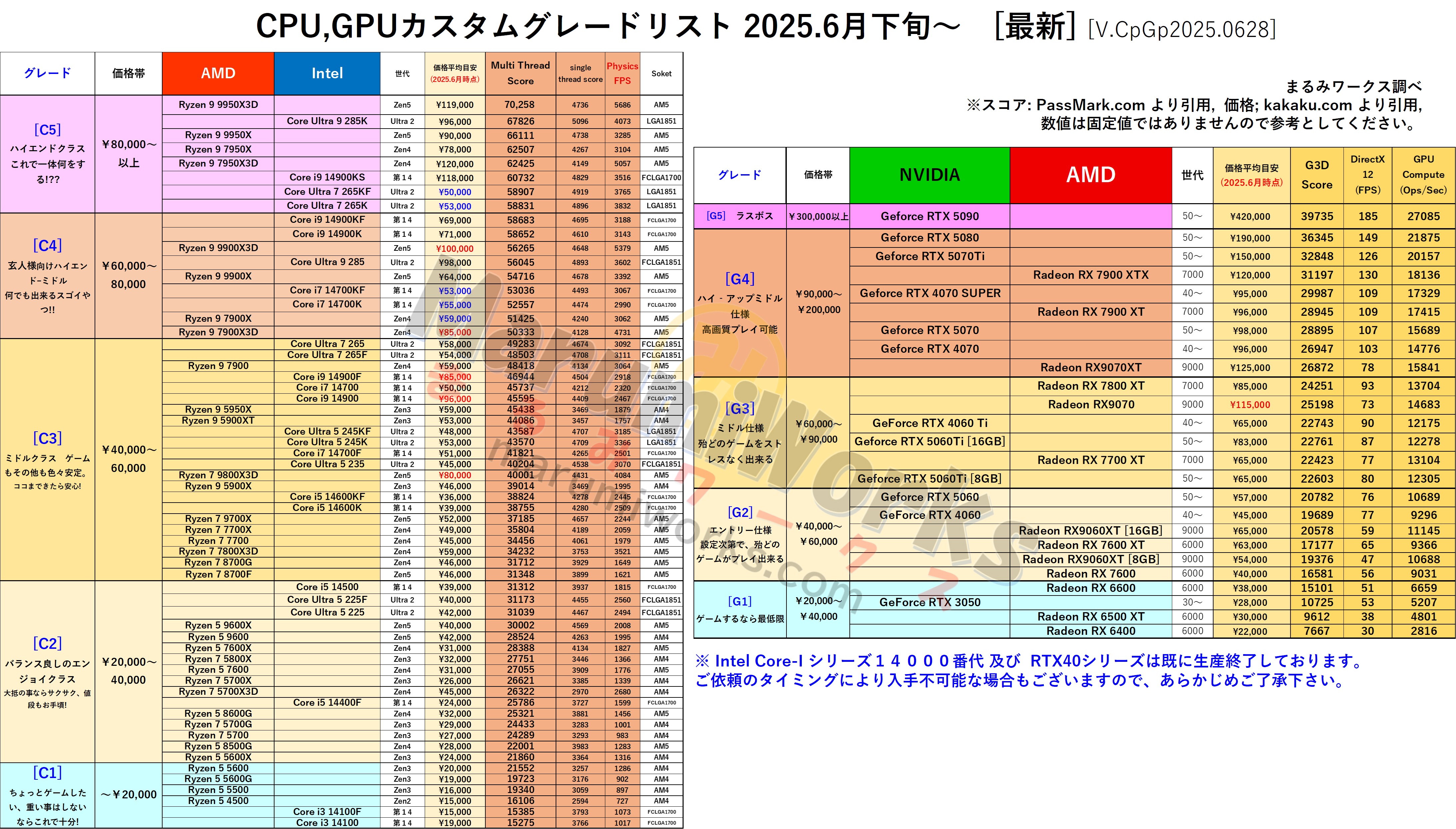 プロセッサー(CPU), グラフィック(GPU)のグレードリスト